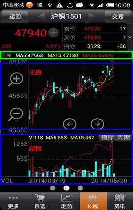 ◇ 商品搜索:點擊“更多”--“商品搜索”,可以快速切換到需要查看的品種信息。